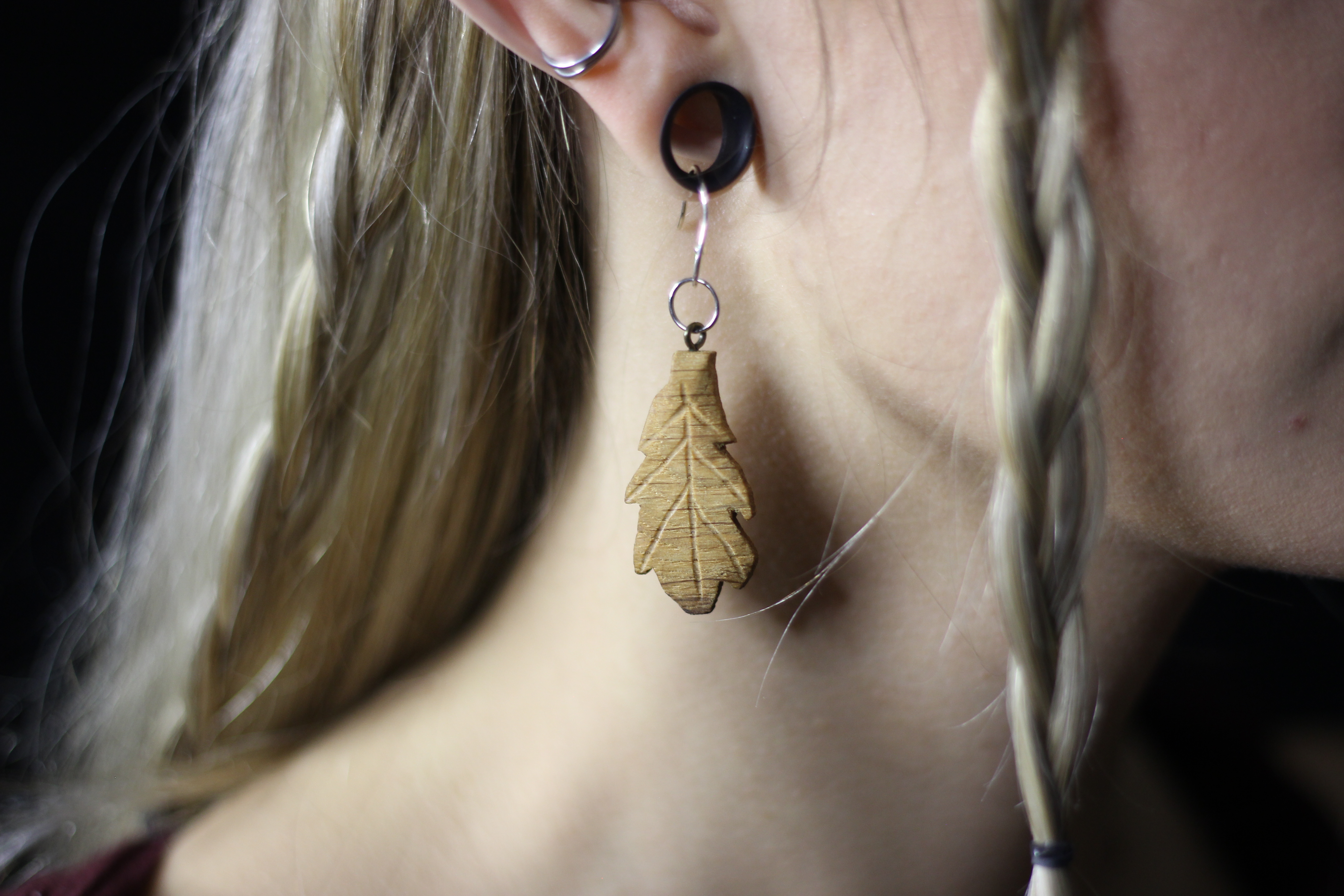 rendre un petit hommage. Ces boucles d’oreilles sont sculptées à la main dans un vieux morceau de chêne
