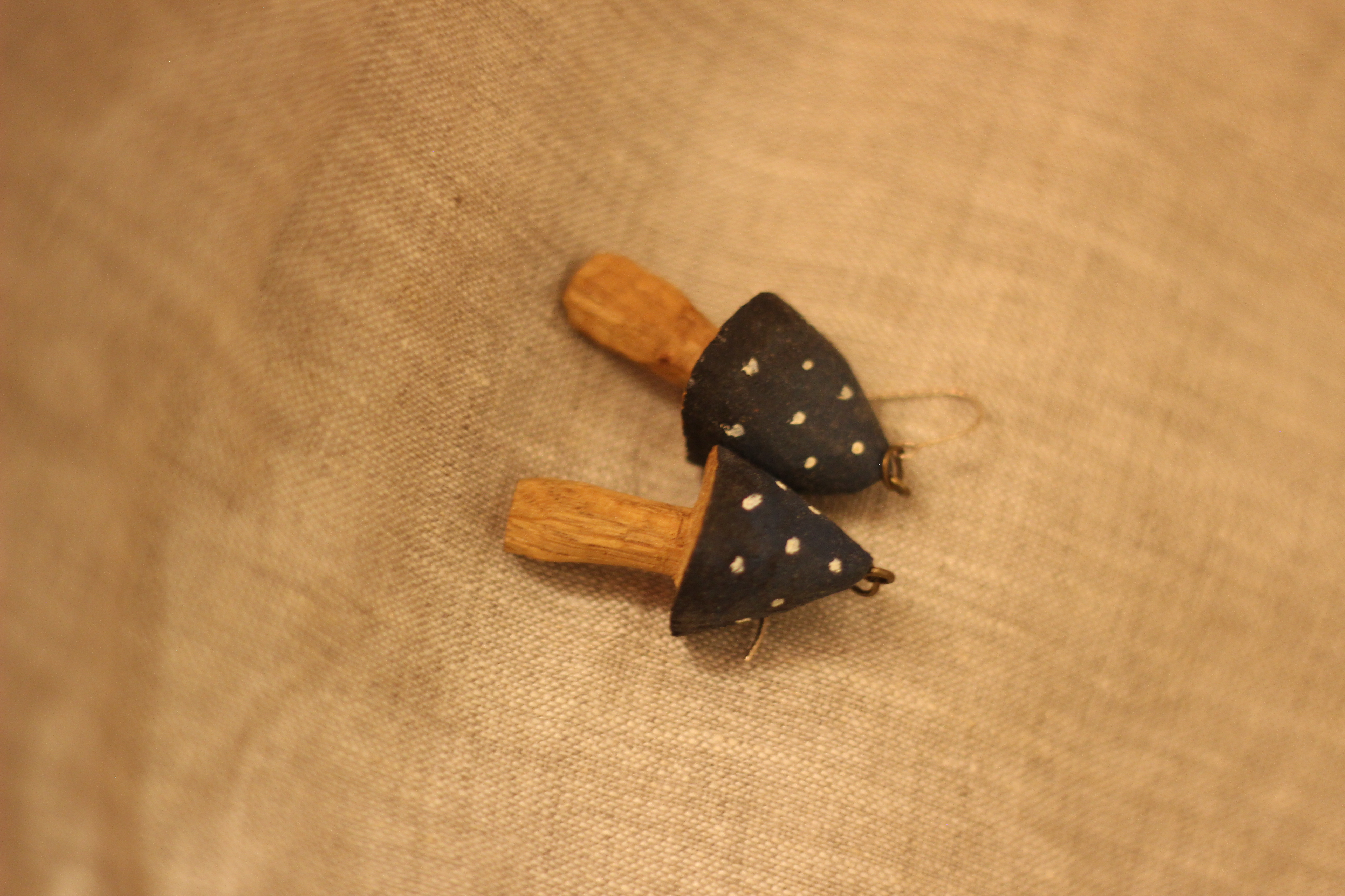 Ces adorables petits champignons se portent au cou et aux oreilles, et donneront une touché féerique et sylvestre à vos tenues. Sculptées à la main dans des petites pièces de chêne, il peuvent aussi bien garder la seule beauté naturelle du bois, comme arborer des peintures réalistes et fantaisistes.
