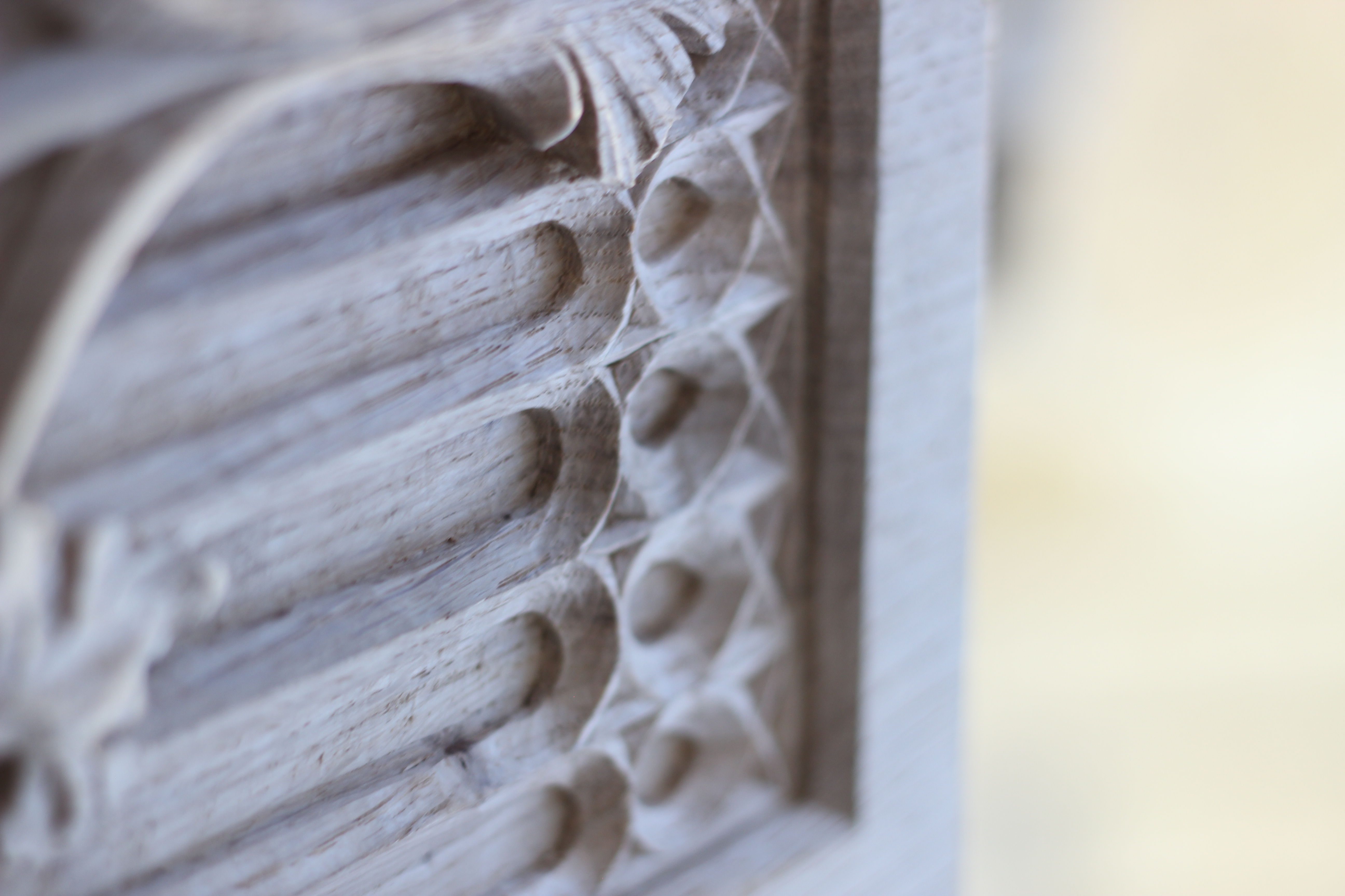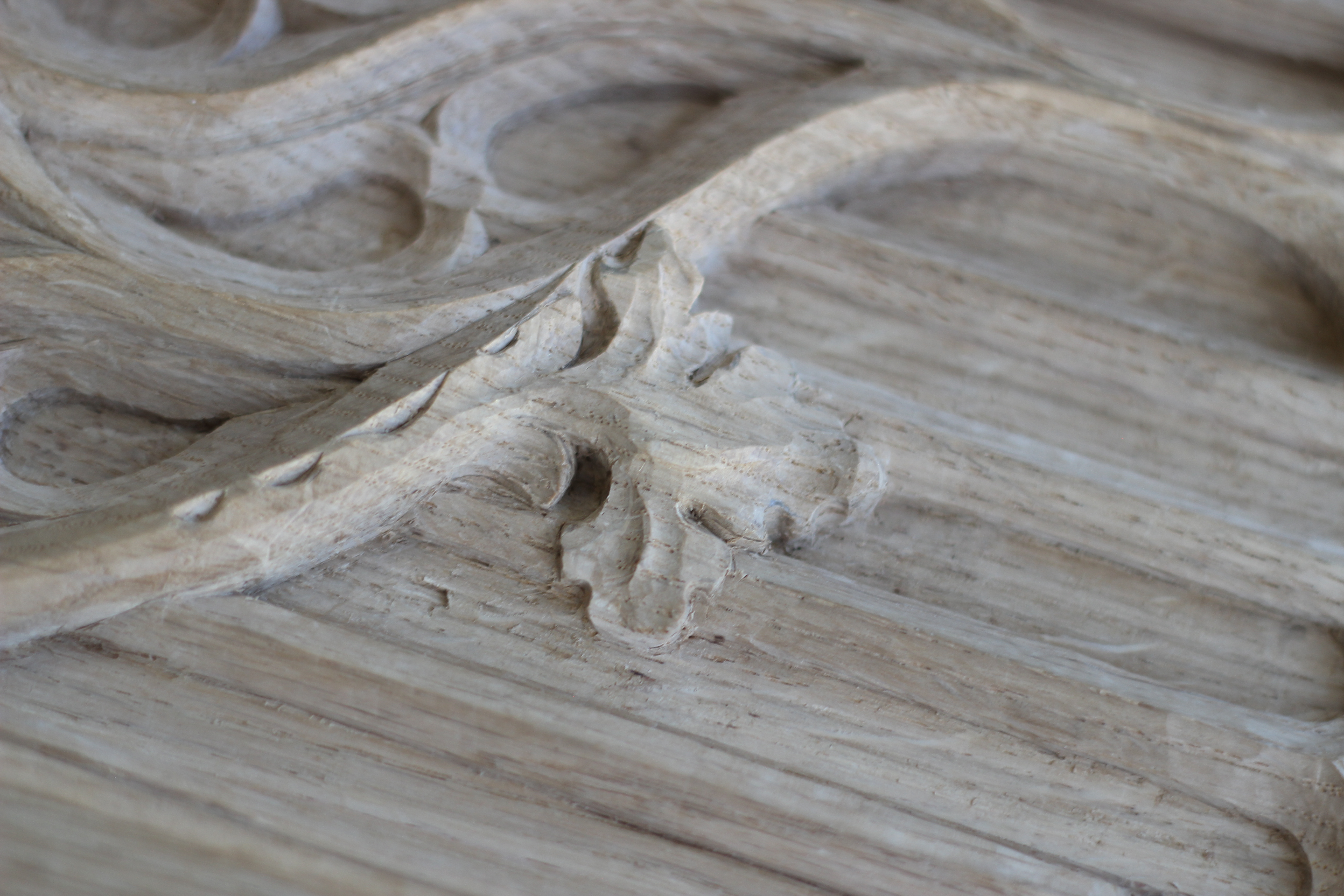 le travail de menuiserie pour créer la pièce sur laquelle on vient sculpter, et enfin, tout le processus de taille traditionnel.